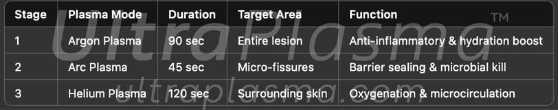 • UltraPlasma™ Arc Plasma Mode: Delivers concentrated electrical micro-arcs for epidermal and microbial surface disruption.