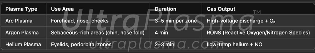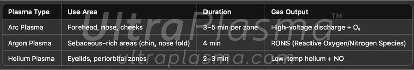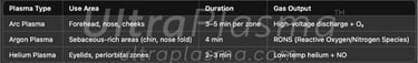 Plasma medicine, particularly non-thermal atmospheric pressure plasma (NTAPP), has emerged as a potent dermatologic therapy. UltraPlasma™ leverages controlled micro-thermal and chemical plasma emissions with arc, argon, and helium plasma for precision treatment across all three skin layers.