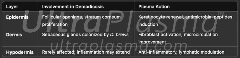 Demodex folliculorum and Demodex brevis are ubiquitous ectoparasitic mites implicated in various dermatological disorders, including rosacea, blepharitis, seborrheic dermatitis, and acneiform eruptions. Conventional treatment strategies remain limited due to recurrence and drug resistance. This article introduces a novel, multi-modal therapeutic approach using UltraPlasma™, a proprietary multi-platform plasma system integrating arc, argon, and helium plasma technologies, to eliminate Demodex mites effectively. The treatment’s success hinges on its ability to interact with epidermal, dermal, and hypodermal layers, while utilizing ozone (O₃), nitric oxide (NO), and reactive species to deliver localized microbicidal, anti-inflammatory, and immunomodulatory effects. Figures and references are provided to support the multi-layered mechanism and clinical potential.
