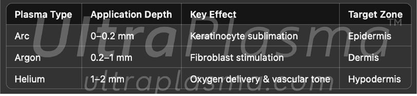 UltraPlasma™ introduces a unique multi-gas emission platform, enabling selective epidermal sublimation, dermal collagen remodeling, and deep skin regeneration via gas-specific depth modulation.