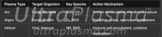 Noble gas plasma with strong antibacterial and antifungal effects.